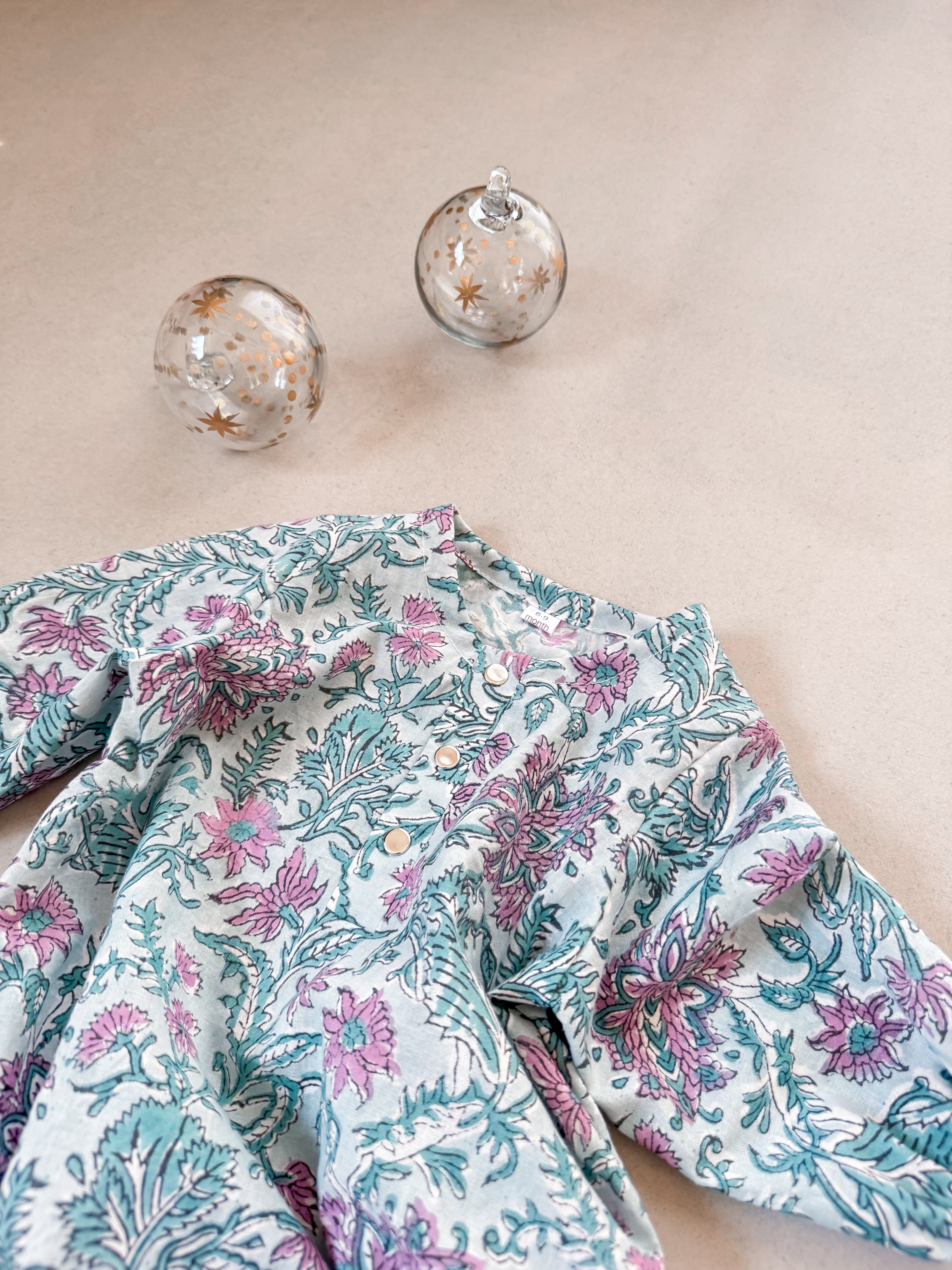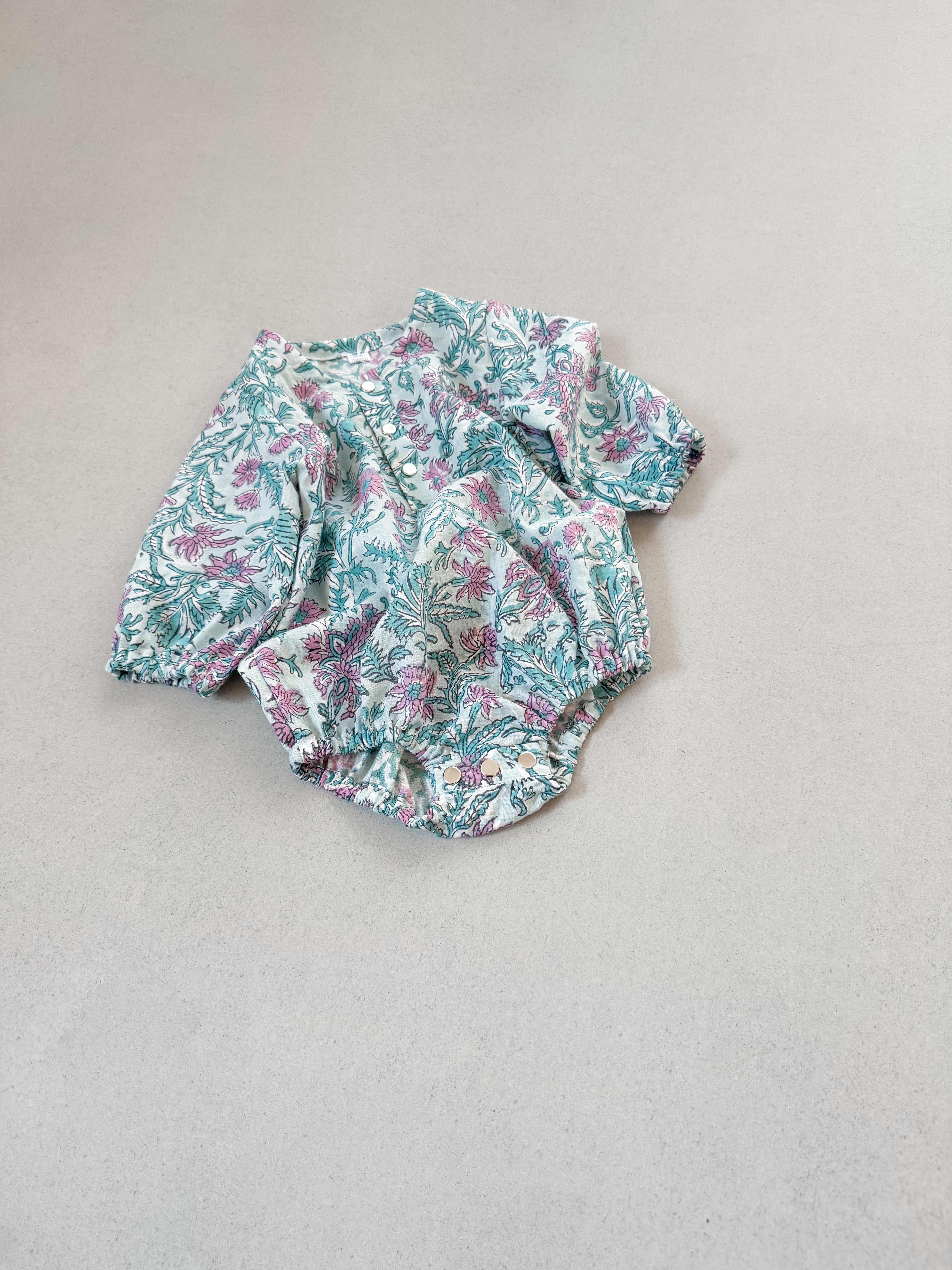 【70-80cmオーダー】キルト風仕立てインド綿ロンパース