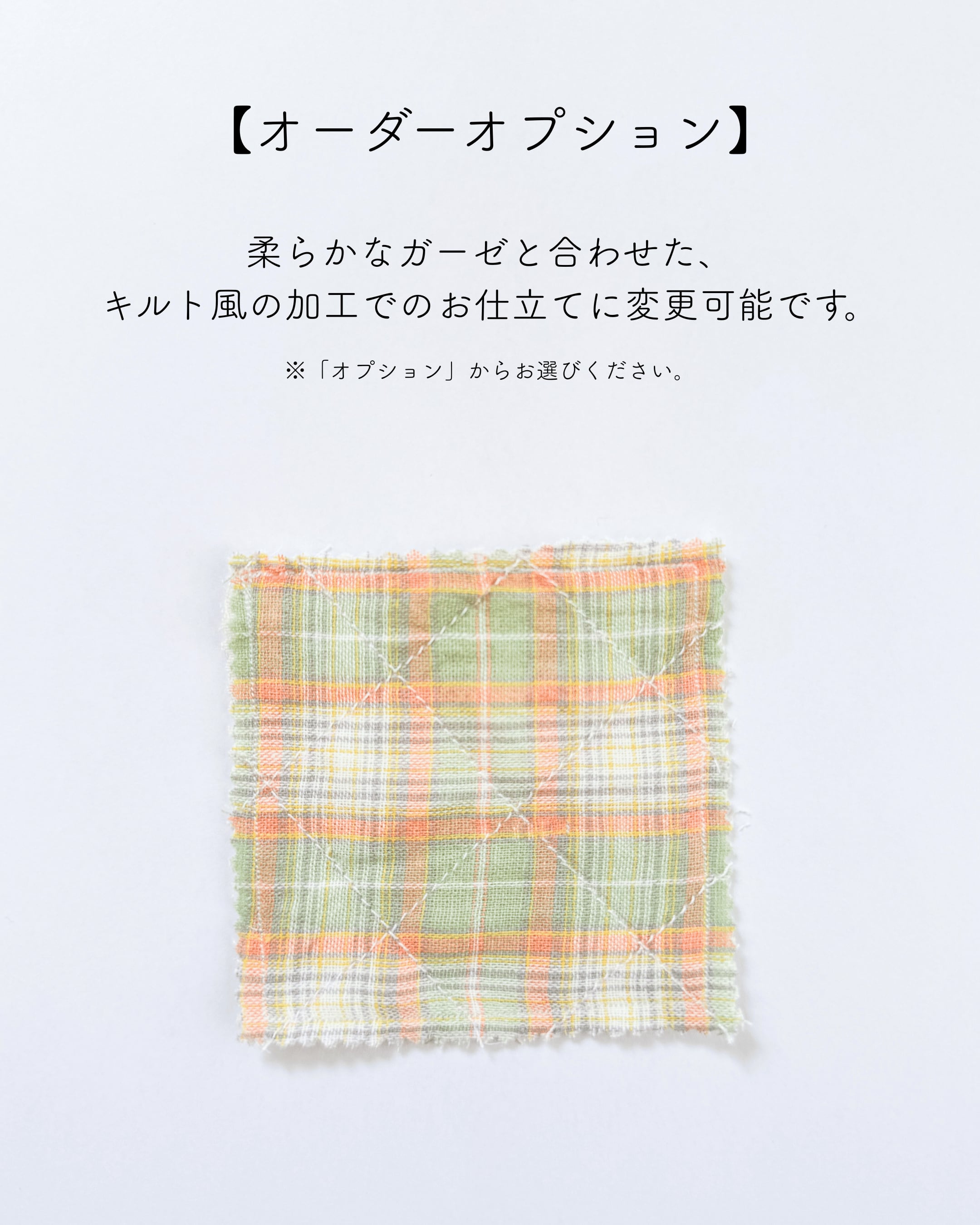 オプションで「キルト風仕立て」に変更可能です。(写真4枚目)