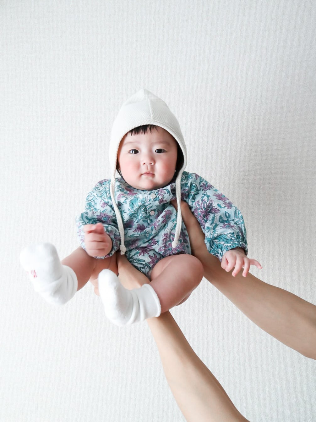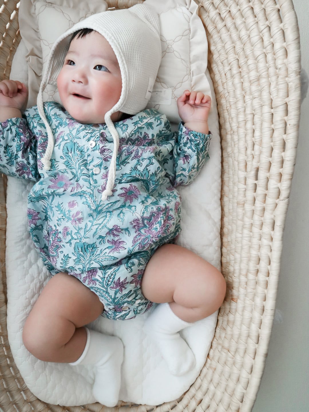 ベーシックな形のロンパースは性別問わず、着ていただけます。